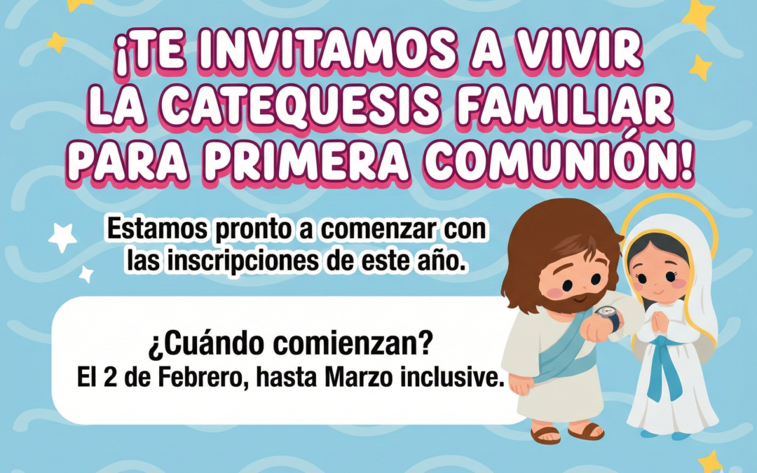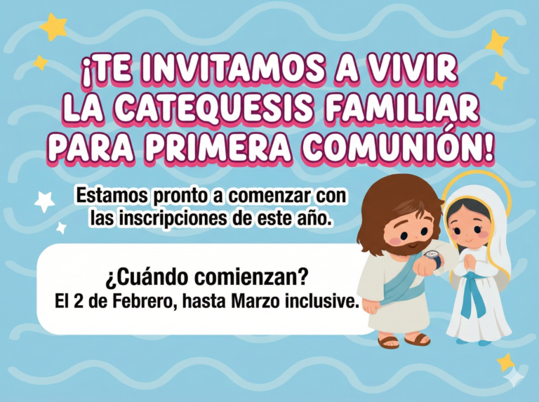 Si tu hijo o hija tiene edad para prepararse para la Primera Comunión, te invitamos a inscribirlo en nuestra Catequesis Familiar 💛